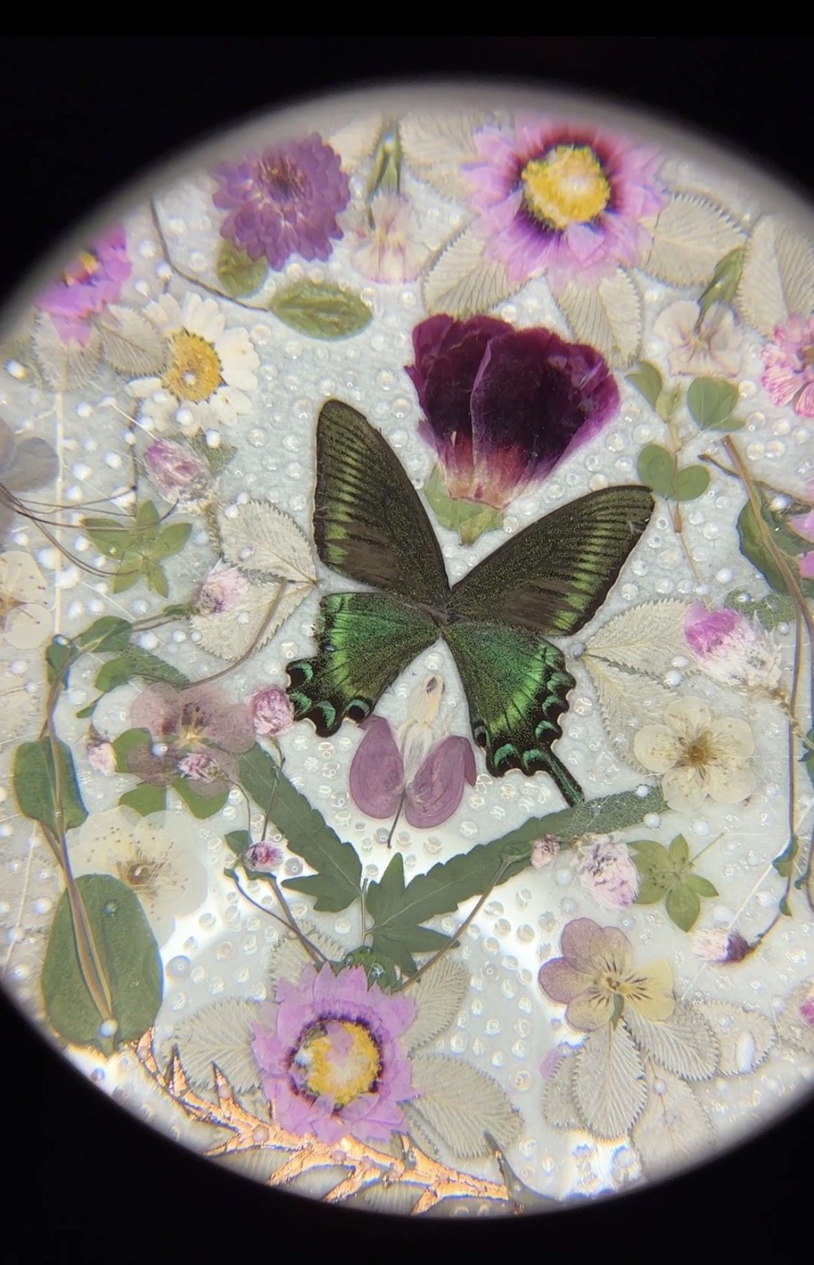 In 2022, my creative path expanded into botanical art, where my attention was drawn to butterflies as symbols of transformation, interconnection, and quiet resilience. I became deeply moved by their delicate yet essential role within our ecosystem and began incorporating their presence into my artwork as a way to honor their beauty beyond a single lifetime. This work also became a gesture of reciprocity, offering support to butterfly farms around the world and inviting a deeper awareness of our relationship with the living Earth. Through creative expression, I sought not only to honor their beauty, but to cultivate awareness and reverence for the natural world and the unseen rhythms that sustain it. Art became my first language of devotion, a way to listen to the quiet teachings of nature.